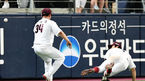 [OSEN=고척, 박재만 기자] 30일 오후 고척 스카이돔에서 '2019 신한은행 MY CAR KBO리그' 키움 히어로즈와 LG 트윈스의 경기가 열렸다.9회초 1사 2루 LG 김현수의 타구를 키움 임지열, 김하성이 충돌하며 포구에 실패하고 있다. /pjmpp@osen.co