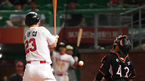 [OSEN=창원, 민경훈 기자] 30일 오후 경상남도 창원NC파크에서 ‘2019년 신한은행 마이카 KBO리그’ NC 다이노스와 롯데 자이언츠의 경기가 열렸다.7회초 2사 주자 2,3 롯데 민병헌이 타석에서 볼에 맞고 있다./rumi@osen.co.kr