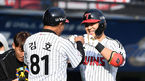 [OSEN=잠실, 이대선 기자] 1일 오후 서울 잠실야구장에서 ‘2019년 신한은행 마이카 KBO리그’ LG 트윈스와 NC 다이노스의 경기가 열렸다.2회말 2사에서 LG 김민성이 좌월 솔로 홈런을 치고 홈에서 김호 코치와 하이파이브를 하