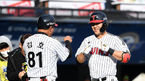 [OSEN=인천, 민경훈 기자] 1일 오후 인천 SK행복드림구장에서 ’2019 신한은행 MY CAR KBO리그' SK 와이번스와 한화 이글스의 경기가 열렸다.1회말을 마친 한화 선발 서폴드가 덕아웃에서 동료들과 하이파이브를 하고 있다. /rumi@osen.