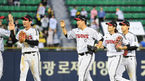 [OSEN=잠실, 이대선 기자] LG 트윈스가 NC 다이노스를 꺾고 4연승, 단독 3위로 올라섰다.LG는 1일 잠실에서 열린 2019 KBO리그 NC전에 5-1로 승리했다. 주중 키움전에 이어 주말 NC전까지 위닝시리즈를 확보했다.경기 종료 후 LG 선수들이