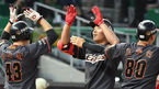 [OSEN=인천, 민경훈 기자] 1일 오후 인천 SK행복드림구장에서 ’2019 신한은행 MY CAR KBO리그' SK 와이번스와 한화 이글스의 경기가 열렸다.9회초 2사 주자 1,2루 한화 장진혁이 우월 스리런 홈런을 날린 후 홈을 밟고 있다. /rumi@osen.co
