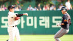 [OSEN=인천, 민경훈 기자] 2일 오후 인천 SK행복드림구장에서 ’2019 신한은행 MY CAR KBO리그' SK 와이번스와 한화 이글스의 경기가 열렸다.1회초 1사 주자 1루 한화 김태균의 투수 앞 병살타때 SK 2루수 나주환이 2루에서 한화 정은원
