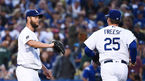 [OSEN=LA(미국),박준형 기자] 2일 (한국시간) 미국 캘리포니아주 로스앤젤레스 다저스타디움에서 2019 메이저리그 LA다저스와 필라델피아 필리스의 경기가 진행됐다.2회초 이닝종료 후 커쇼가 프리즈와 하이파이브를 하고 있다 / sou