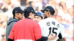 [OSEN=인천, 민경훈 기자] 2일 오후 인천 SK행복드림구장에서 ’2019 신한은행 MY CAR KBO리그' SK 와이번스와 한화 이글스의 경기가 열렸다.4회초 2사 주자 1,2루 한화 이성열 타석에서 마운드에 오른 SK 손혁 코치가 선발 산체스와 얘
