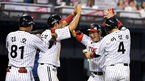 [OSEN=잠실, 최규한 기자] 4일 오후 서울 잠실야구장에서 ’2019 신한은행 MY CAR KBO리그' LG 트윈스와 KT 위즈의 경기가 열렸다.4회말 1사 만루 상황 LG 오지환이 우월 만루포를 날리고 홈을 밟은 뒤 채은성-이성우와 기뻐하고 있다.