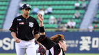 [OSEN=고척, 곽영래 기자] 4일 오후 서울 고척스카이돔크에서 '2019 신한은행 마이카 KBO리그' 키움 히어로즈와 SK 와이번스의 경기가 열렸다.3회말 2사 SK 손혁 코치가 키움 이정후의 타구에 맞은 이케빈의 상태를 체크하고 있다. /youn
