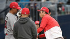 [OSEN=고척, 곽영래 기자] 4일 오후 서울 고척스카이돔크에서 '2019 신한은행 마이카 KBO리그' 키움 히어로즈와 SK 와이번스의 경기가 열렸다.4회초 공수교대 때 키움 이정후의 타구에 맞은 SK 이케빈과 키움 이정후가 이야기를 나누