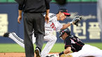 [OSEN=잠실, 최규한 기자] 4일 오후 서울 잠실야구장에서 ’2019 신한은행 MY CAR KBO리그' LG 트윈스와 KT 위즈의 경기가 열렸다.3회초 무사 1루 상황 KT 황재균 타석 때 주자 김민혁이 2루 도루에 성공하고 있다. 태그를 시도하는 LG 2