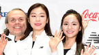 [OSEN=최규한 기자] 4일 오후 서울 방이동 올림픽공원 케이스포돔 체조경기장에서 ‘올댓스케이트 2019 아이스쇼’ 리허설 공개 및 기자회견이 진행됐다.김연아, 임은수와 안무가 데이비드 윌슨이 포토타임을 하고 있다. /dr