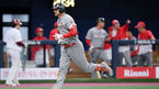 [OSEN=고척, 이동해 기자] 5일 오후 서울 고척스카이돔에서 '2019 신한은행 마이카 KBO리그' 키움 히어로즈와 SK 와이번스의 경기가 열렸다.7회초 SK 선두타자 로맥이 키움 신재영의 초구 받아쳐 솔로홈런을 쏘아올린 후 그라운드를