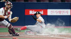 [OSEN=고척, 이동해 기자] 5일 오후 서울 고척스카이돔에서 '2019 신한은행 마이카 KBO리그' 키움 히어로즈와 SK 와이번스의 경기가 열렸다.3회초 무사 1,2루 SK 고종욱의 1타점 적시타 때 2루에 있던 김창평이 몸 날려 득점 성공하고 있