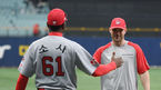 [OSEN=고척, 이동해 기자] 5일 오후 서울 고척스카이돔에서 열릴 예정인 ’2019 신한은행 마이카 KBO리그' 키움 히어로즈와 SK 와이번스의 경기에 앞서 그라운드 훈련이 진행됐다.한국으로 돌아와 SK로 이적한 소사가 로맥과 인사
