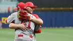 [OSEN=고척, 이동해 기자] 5일 오후 서울 고척스카이돔에서 열릴 예정인 ’2019 신한은행 마이카 KBO리그' 키움 히어로즈와 SK 와이번스의 경기에 앞서 그라운드 훈련이 진행됐다.SK 정의윤이 소사와 포옹을 나누고 있다. / eastsea@o