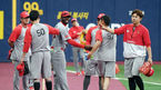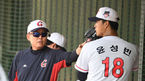 [OSEN=고척, 이동해 기자] 5일 오후 서울 고척스카이돔에서 열릴 예정인 ’2019 신한은행 마이카 KBO리그' 키움 히어로즈와 SK 와이번스의 경기에 앞서 그라운드 훈련이 진행됐다.한국으로 돌아와 SK로 이적한 소사가 염경엽 감독