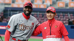 [OSEN=고척, 이동해 기자] 5일 오후 서울 고척스카이돔에서 열릴 예정인 ’2019 신한은행 마이카 KBO리그' 키움 히어로즈와 SK 와이번스의 경기에 앞서 그라운드 훈련이 진행됐다.SK 염경엽 감독이 소사와 인사를 나누고 있다. / ea