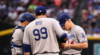 [OSEN=피닉스(미국 애리조나주),박준형 기자] 5일 (한국시간) 미국 애리조나주 피닉스 체이스필드에서 2019 메이저리그 애리조나 다이아몬드백스와 LA다저스의 경기가 열렸다.1회말 2사에서 LA 맥스 먼시의 실책 때 류현진이 아쉬워