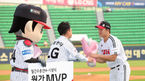 [OSEN=조형래 기자]LG트윈스는5일KT위즈와의잠실 홈경기에앞서 구단에서 선정한 월간 수훈선수 시상을 실시했다.5월MVP로는 투수고우석이선정됐다. 팀의 새로운 마무리로 등극한 고우석은 5월 한 달 간11경기 등판해2승8세이브11.2