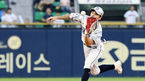 [OSEN=잠실, 이동해 기자] 8일 오후 서울 잠실야구장에서 ‘2018 신한은행 MY CAR KBO리그' 두산 베어스와 키움 히어로즈의 경기가 열렸다.8회초 키움 선두타자 샌즈의 뜬볼 타구를 두산 오재원이 다이렉트로 잡기 위해 몸 날리고