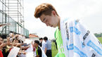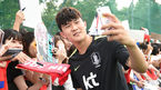 [OSEN=부산, 민경훈 기자] 파울루 벤투 감독이 이끄는 축구대표팀이 8일 오전 부산 강서체육공원에서 회복훈련을 했다. 팬들에게 내용을 공개하는 오픈 트레이닝으로 진행됐다.회복훈련을 마치고 열린 팬 사인회에서 황희찬이 축