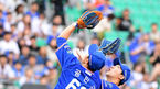 [OSEN=인천, 지형준 기자] 9일 오후 인천 SK행복드림구장에서 ‘2019년 신한은행 마이카 KBO리그’ SK 와이번스와 삼성 라이온즈의 경기가 열렸다.3회말 2사 1루에서 삼성 공민규가 최영진에 앞서 SK 정의윤의 1루 플라이 타구를