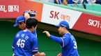 [OSEN=인천, 지형준 기자] 9일 오후 인천 SK행복드림구장에서 ‘2019년 신한은행 마이카 KBO리그’ SK 와이번스와 삼성 라이온즈의 경기가 열렸다.6회초 무사에서 삼성 구자욱이 우월 솔로포를 날리고 강명구 코치와 하이파이