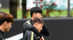 [OSEN=파주, 최규한 기자] 오는 11일 이란과의 평가전을 앞둔 대한민국 남자축구 국가대표팀이 10일 오전 파주 NFC에서 공식 훈련을 진행했다.손흥민과 이승우가 훈련을 나서며 대화를 나누고 있다. /dreamer@osen.co.kr