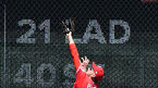 [OSEN=텍사스(미국 알링턴),박준형 기자] 10일(한국시간) 미국 텍사스주 알링턴 글로브 라이브 파크에서 '2019 메이저리그(MLB)’ 텍사스 레인저스와 오클랜드 애슬레틱스의 경기가 펼쳐졌다.1회초 텍사스 좌익수 펜스가 호수비