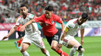 [OSEN=서울월드컵경기장, 이대선] 11일 오후 서울월드컵경기장에서 대한민국 축구 국가대표팀과 이란의 A매치 평가전 열렸다.후반 대한민국 이승우가 이란 수비와 신경전을 벌이고 있다. /sunday@osen.co.kr