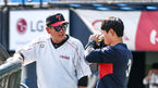 [OSEN=잠실, 박재만 기자] 11일 오후 서울 잠실야구장에서 ‘2019 신한은행 MY CAR KBO리그’ LG 트윈스와 롯데 자이언츠의 경기가 열린다.LG 류중일 감독이 이상훈 해설위원과 악수를 하고 있다. /pjmpp@osen.co.kr