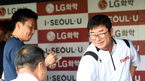 [OSEN=잠실, 박재만 기자] 11일 오후 서울 잠실야구장에서 ‘2019 신한은행 MY CAR KBO리그’ LG 트윈스와 롯데 자이언츠의 경기가 열린다.LG 신경식 코치가 롯데 민병헌과 대화를 나누고 있다. /pjmpp@osen.co.kr