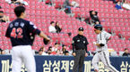 [OSEN=잠실, 곽영래 기자] 12일 오후 서울 잠실야구장에서 '2019 신한은행 마이카 KBO리그' LG 트윈스와 롯데 자이언츠의 경기가 열렸다.4회초 2사 LG 차우찬이 롯데 전준우의 타구를 피하려다 넘어진 뒤 최일언 코치와 이야기를 나누