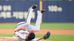 [OSEN=잠실, 곽영래 기자] 12일 오후 서울 잠실야구장에서 '2019 신한은행 마이카 KBO리그' LG 트윈스와 롯데 자이언츠의 경기가 열렸다.4회초 2사 LG 차우찬이 롯데 전준우의 타구를 피하려다 넘어지고 있다. /youngrae@osen.co.kr