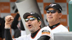 [OSEN=대전, 최규한 기자] 12일 오후 대전 한화생명이글스파크에서 ’2019 신한은행 MY CAR KBO리그' 한화 이글스와 두산 베어스의 경기가 열렸다.1회말 1사 1루 상황 한화 호잉이 선제 투런포를 날리고 홈을 밟은 뒤 한용덕 감독과
