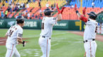 [OSEN=대전, 최규한 기자] 12일 오후 대전 한화생명이글스파크에서 ’2019 신한은행 MY CAR KBO리그' 한화 이글스와 두산 베어스의 경기가 열렸다.1회말 1사 1루 상황 한화 호잉이 선제 투런포를 날리고 홈을 밟은 뒤 김태균과 하이