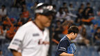 [OSEN=대전, 최규한 기자] 12일 오후 대전 한화생명이글스파크에서 ’2019 신한은행 MY CAR KBO리그' 한화 이글스와 두산 베어스의 경기가 열렸다.7회말 무사 선두타자로 나선 한화 김태균에게 볼넷을 내준 두산 투수 함덕주가 아쉬