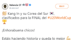 [OSEN=이인환 기자] 발렌시아가 이강인을 비롯한 정정용호의 첫 결승행에 축하 메시지를 건넸다.정정용 감독이 이끄는 한국은 12일 오전 3시30분(한국시간) 폴란드 루블린 아레나에서 열린 에콰도르와의 준결승전에서 전반 38분 터
