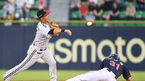 [OSEN=잠실, 곽영래 기자] 13일 오후 서울 잠실야구장에서 '2019 신한은행 마이카 KBO리그' LG 트윈스와 롯데 자이언츠의 경기가 열렸다.4회초 1사 1루 LG 정주현이 롯데 배성근의 유격수 땅볼때 1루주자 손아섭을 아웃시키고 1루로 송