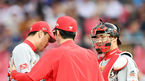 [OSEN=수원, 박재만 기자] 13일 오후 경기도 수원kt위즈파크에서 '2019 신한은행 MY CAR KBO리그' kt 위즈와 SK 와이번스의 경기가 열렸다.3회말 2사 kt 황재균에게 안타를 허용 후 아쉬워하는 SK 김광현을 손혁 코치가 격려하고 있다. /pjmp