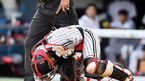 [OSEN=잠실, 곽영래 기자] 13일 오후 서울 잠실야구장에서 '2019 신한은행 마이카 KBO리그' LG 트윈스와 롯데 자이언츠의 경기가 열렸다.2회초 2사 LG 이성우가 파울타구에 맞아 통증을 호소하고 있다. /youngrae@osen.co.kr