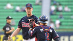 [OSEN=잠실, 곽영래 기자] 13일 오후 서울 잠실야구장에서 '2019 신한은행 마이카 KBO리그' LG 트윈스와 롯데 자이언츠의 경기가 열렸다.1회말 삼자범퇴로 이닝을 마친 롯데 다익손이 안중열과 주먹을 맞대고 있다. /youngrae@osen.co.kr