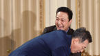 [OSEN=이동해 기자] 13일 오후 서울 강남구 논현동 임피리얼 팰리스 호텔에서 JTBC 새 금토드라마 '보좌관' 제작발표회가 열렸다.배우 김갑수가 정웅인의 보좌를 받으며 입장하다 넘어지고 있다. / eastsea@osen.co.kr