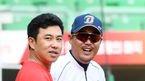 [OSEN=인천, 민경훈 기자] 14일 오후 인천 SK행복드림구장에서 ’2019 신한은행 MY CAR KBO리그' SK 와이번스와 NC 다이노스의 경기가 열릴 예정인 가운데 그라운드 훈련이 진행됐다.NC 이호준 코치가 SK 김강민과 즐겁게 얘기를 나누