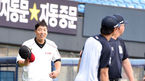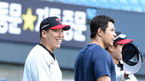 [OSEN=잠실, 이대선 기자] 16일 오후 서울 잠실야구장에서 ‘2019년 신한은행 마이카 KBO리그’ 두산 베어스와 LG 트윈스의 경기가 열릴 예정이다.경기에 앞서 LG 김현수가 두산 김재환과 이야기를 나누고 있다. /sunday@osen.co.kr