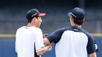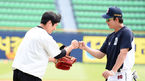 [OSEN=잠실, 이대선 기자] 16일 오후 서울 잠실야구장에서 ‘2019년 신한은행 마이카 KBO리그’ 두산 베어스와 LG 트윈스의 경기가 열릴 예정이다.경기에 앞서 LG 김용의가 두산 고영민 코치와 인사를 나누며 웃고 있다. /sunday@o