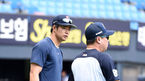 [OSEN=잠실, 이대선 기자] 16일 오후 서울 잠실야구장에서 ‘2019년 신한은행 마이카 KBO리그’ 두산 베어스와 LG 트윈스의 경기가 열릴 예정이다.경기에 앞서 두산 김재환이 김태형 감독과 이야기를 나누고 있다. /sunday@osen.co.k