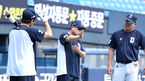 [OSEN=잠실, 이대선 기자] 16일 오후 서울 잠실야구장에서 ‘2019년 신한은행 마이카 KBO리그’ 두산 베어스와 LG 트윈스의 경기가 열릴 예정이다.경기에 앞서 LG 김현수와 두산 유희관이 장난을 치고 있다. /sunday@osen.co.kr