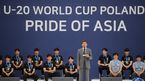 [OSEN=민경훈 기자] 17일 오후 서울시 중구 세종대로 서울시청 광장에서 ’2019 국제축구연맹(FIFA) 20세 이하(U-20) 월드컵' 결승전에서 준우승을 거둔 U-20 대표팀의 환영행사가 진행됐다.정 감독이 이끄는 U-20 대표팀은 2019 국제축
