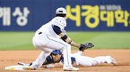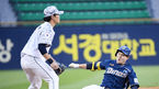 [OSEN=잠실, 곽영래 기자] 13일 오후 서울 잠실야구장에서 '2019 신한은행 마이카 KBO리그' LG 트윈스와 롯데 자이언츠의 경기가 열렸다.1회초 무사 1,3루 NC 김태진이 박석민의 1루수 땅볼때 3루까지 진루하려다 아웃당하고 있다. /youngr