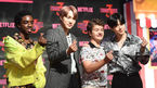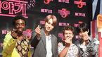 [OSEN=곽영래 기자] 20일 오후 서울 영등포구 타임스퀘어에서 넷플릭스 '기묘한 이야기3' 레드카펫이 진행됐다.배우 케일럽 맥러플린, 엑소 카이, 게이튼 마타라조, 수호가 참석해 포즈를 취하고 있다./youngrae@osen.co.kr